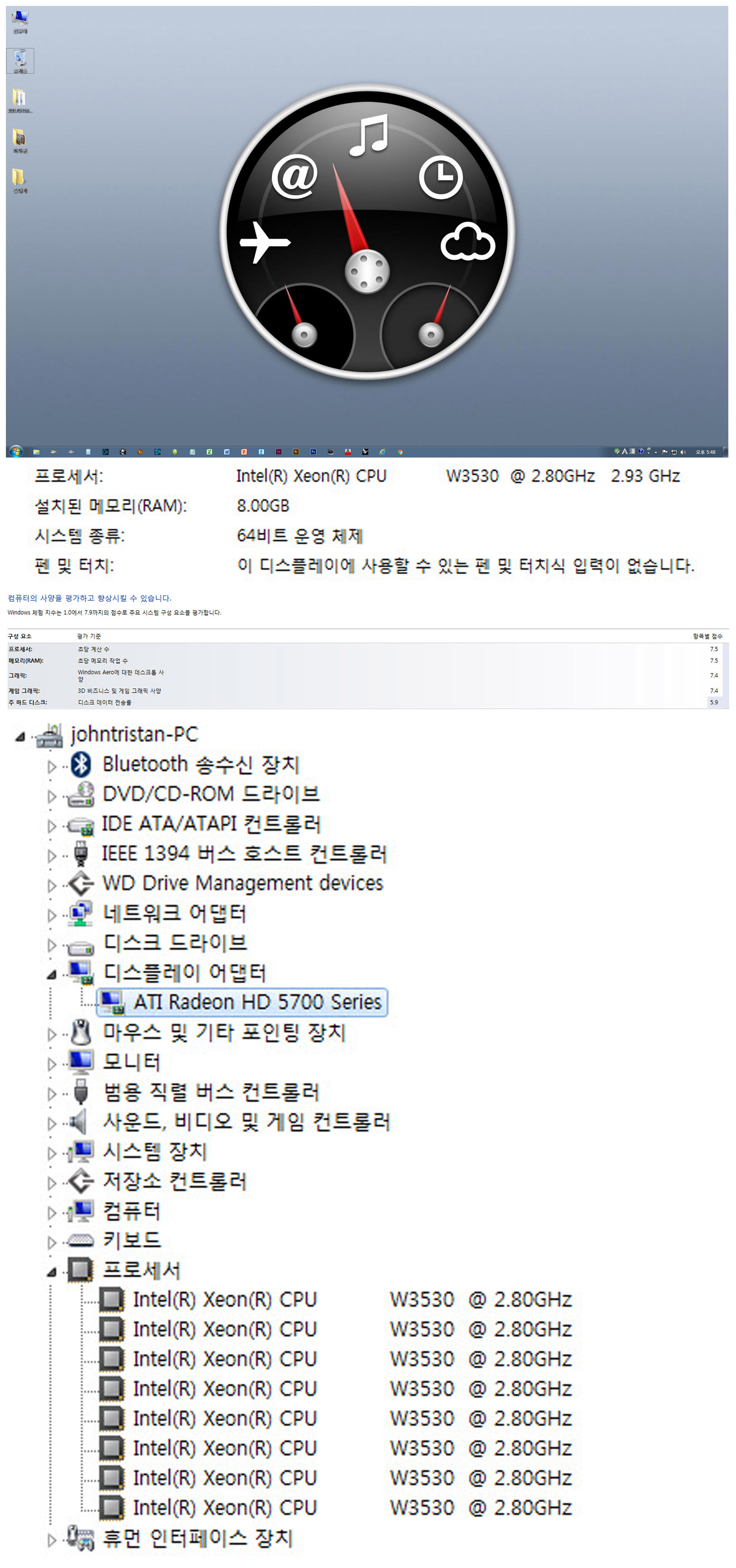 2.메모리 - 8기가(애코에서 구입한 그대로 입니다 / 메모리가격이 비싸 업글을 못했군요~ 지금 메모리세는 잘모르겠습니다>)