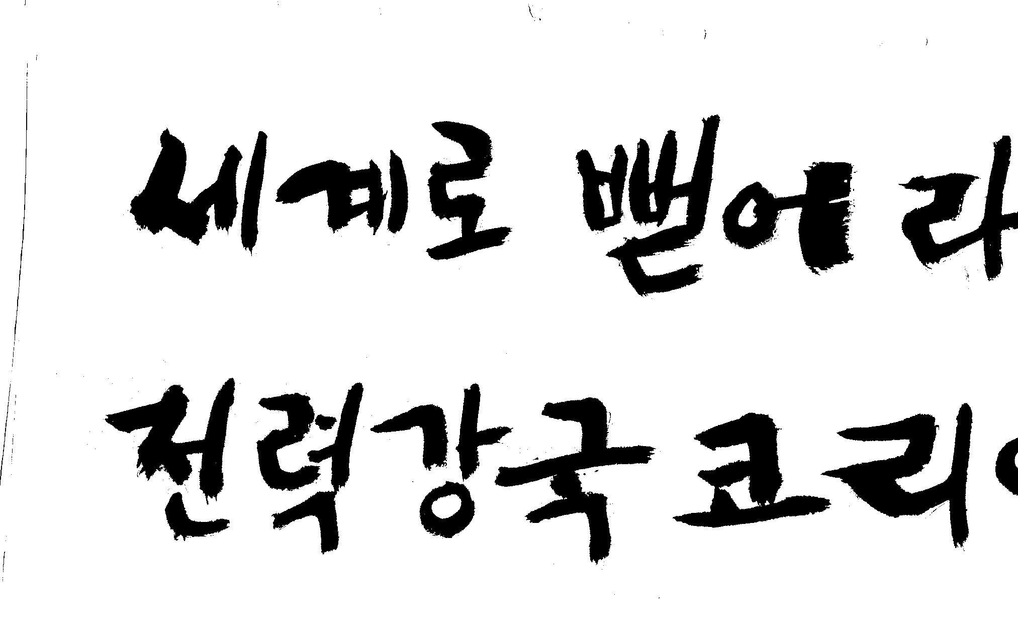 캘리 좀 부탁드려요!~ 김철호 일반 1 12990 2008.12.24 12:09 > > > > > > > > > 전력회사 신문광고를 하는데요 캘리로 멋지게 하고픈데 > > > 캘리프로그램으로 아무리 써도 느낌이 안나옵니다 ㅜ.ㅜ > > > 이런걸 부탁한다는 자체가 너무나도 염치없지만 부탁드립니다. > > > > > > 세계로 뻗어라! 전력강국 코리아 > > > > > 보기는 쉬워도 하기는 어려운게 > > 세상 모든 일 일겁니다. > > 그중에 캘리그라피가 그런 것일 겁니다... > > 스캔중에 글꼴이 잘린것은 서로다른글꼴서 편집하시길... > > 글수가 많아서 어쩔 수없네요... > > >